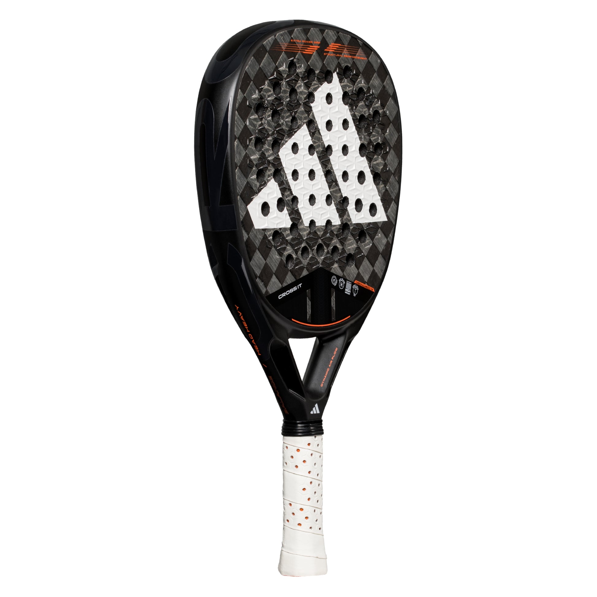 The Cross It 3.4 brings together the best technologies in the world of padel into one racquet. The new generation of Cross It takes it a step further. The Dynamic Air Flow technology enhances airflow in the heart area, while the extended Power Extra Grip handle increases inertia in strikes. This combination maximises the ability to generate power, further enhanced by the 11 Thirteen-hole arrangement.
