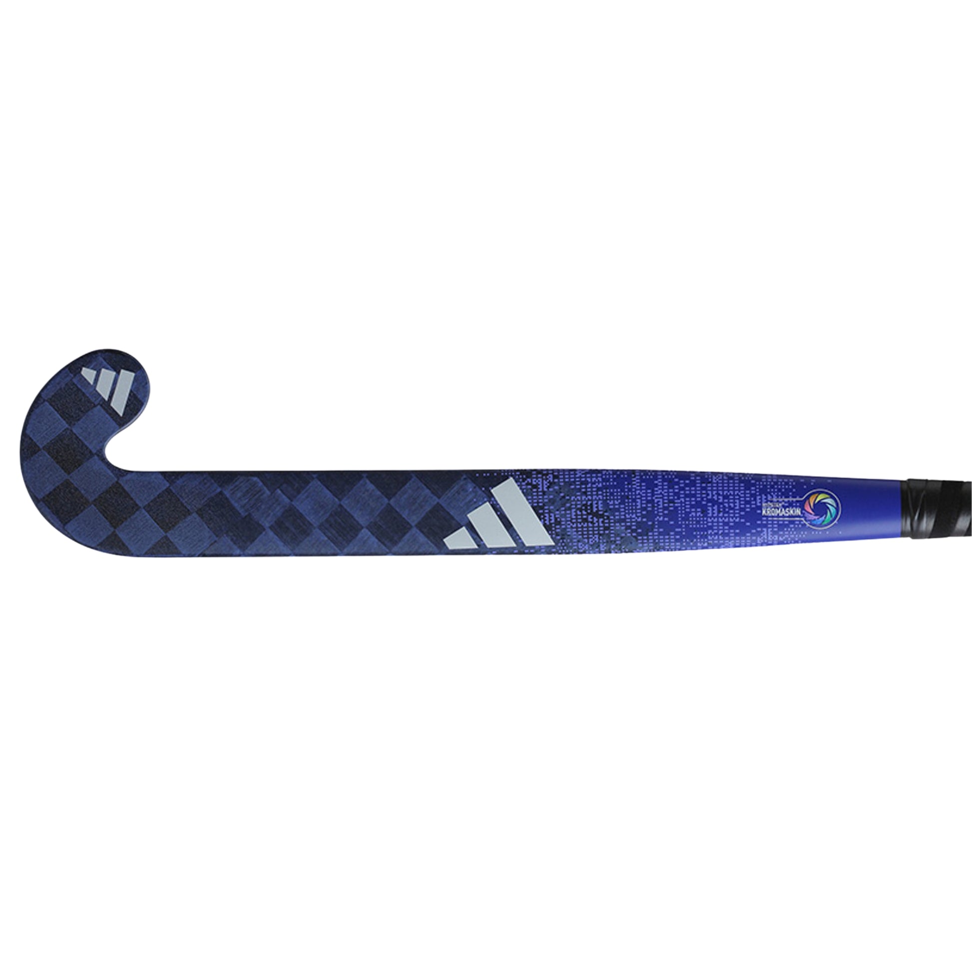 The ESTRO Kromaskin .3 2025 is a premium field hockey stick from Adidas, engineered with advanced materials and technology. Its shaft is encased in ultra-thin carbon fiber inspired by Formula 1 design, boosting both visual appeal and structural integrity. The use of spread tow carbon significantly enhances the strength-to-weight ratio, delivering greater hitting power and extended durability. The stick's 3D geometry adds stiffness to the shaft for more powerful strikes and a cleaner, more precise feel. A uniquely shaped underside makes it easier to lift the ball. In the head, a compression core expands during production to form a consistent, robust internal structure—improving both responsiveness and the sweet spot during passes and receptions. The reverse edge features ACT EDGE, an advanced composite reinforcement that minimizes vibration and resists damage. The ESTRO Kromaskin .3 2025 combines cutting-edge construction with elite performance capabilities.