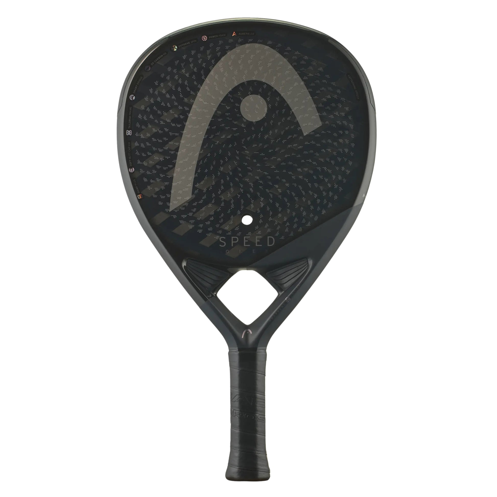 Join the revolution in padel racquet design and accelerate the game, with the new SPEED ONE X, which offers the most advanced players an ideal blend of power and control. For extra durability, this ultra-premium racquet is engineered with game-changing HEAD ONE technology, with just one hole in the hitting surface, which is made from a 2D-layered, see-through carbon for explosive power. State-of-the-art Auxetic 2.0 technology brings unparalleled touch, feel and an extra boost of power while the Extreme Spin technology adds extra ball grip and spin. The heavier weight makes this ideal for experienced players and for additional comfort, the SPEED ONE X has an upgraded Soft Butt Cap and new Damp Plus technology for advanced vibration dampening.
